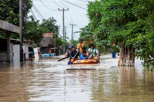 지난 19일, 브까시 지역 침수로 보트를 이용해 주민들이 대피하고 있다(사진=자카르타경제신문/Aditya) 인도네시아 자바섬 전역에서 발생한 대규모 홍수로 최소 5명이 숨지고 수천 명의 주민이 대피하는 등 피해가 확산되고 있다. 당국은 이 같은 상황이 2월까지 이어질 가능성이 있다고 경고했다. 사망자는 중부