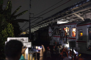 4월 27일 월요일 밤, 동브까시역에서 장거리열차 통근열차(KRL)가 충돌하는 사고가 발생했다. (사진=자카르타경제신문/Aditya) 인도네시아 브까시에서 통근열차(KRL)와 장거리 열차가 충돌해 승객들이 다치는 사고가 발생했다. 27일 꼼빠스닷컴 등에 따르면, 27일 밤 8시 52분 경 동브까시역(Stasiun Bekasi Timur)