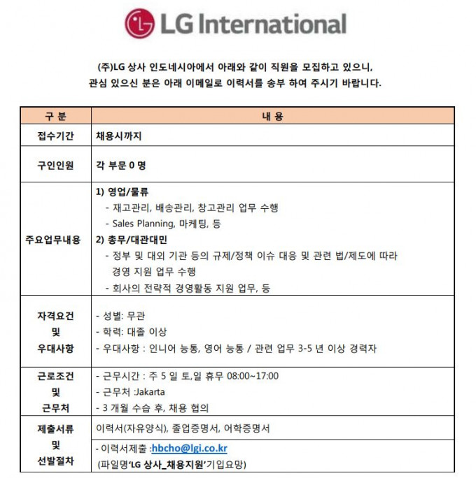 코트라 K-MOVE 센터 [구인] (주) LG 상사 인도네시아