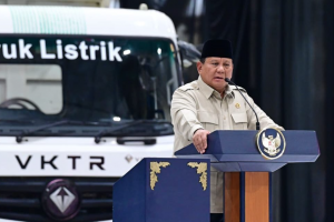 쁘라보워 수비안또 대통령이 2026년 4월 9일, 중부 자바 마글랑에 위치한 VKTR 전기 상용차 조립 공장 준공식에서 연설하고 있다.(사진=대통령 비서실 공보국/Muchlis Jr) 인도네시아 쁘라보워 수비안또 대통령은 9일 중부자바 마글랑에서 VKTR 삭띠 인더스트리즈(PT VKTR Sakti Industries, VKTS)의 전기