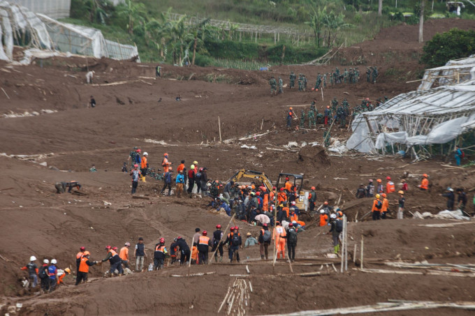 2026년 1월 25일, 합동수색구조팀이 서부자바 반둥 빠시르랑우 마을에서 발생한 산사태 현장에서 인명 구조 작업을 벌이고 있다.*기사 내용과 관련없음 (사진=자카르타경제신문/Aditya)