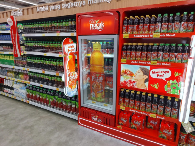 대형수퍼마켓의 음료제품 진열대(사진=자카르타경제신문)