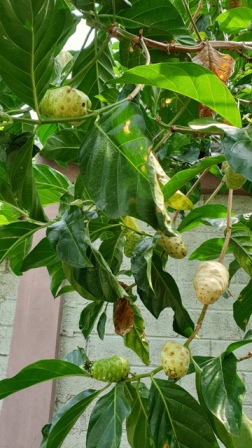 현재 저희 집 담장 안에는 크고 작은 노니 나무가 약 20여 그루가 있습니다. 노니는 연중 쉬지 않고 주렁주렁 달리고 익습니다. 집안에서도 습도가 있는 곳과 햇빛 잘 드는 곳을 좋아하는 것 같고요. 그러니까 동네에서도 또랑가 같은데 있는 노니 나무가 무성하더라고요. 전 사실 노니에 관해 전문적인 식견이 없습니다. 노니의 약효나 성분을 분석할만한 능력도 없습니다. 그래서 제가 하는 노니 이야기는 그야말로 재래적이고 평범한 수준입니다.