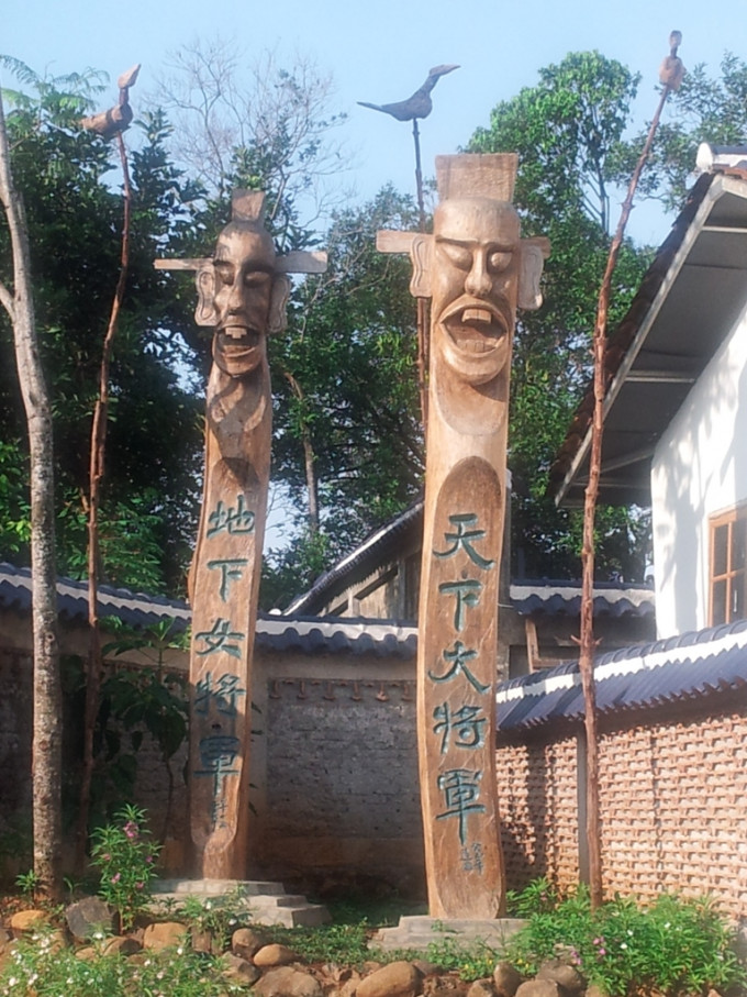 암튼 그렇게 태극을 그리고 사괘를 설치해놓고 늘 대하며 살다 보니 나름대로 기분이 괜찮다. 더불어 세운 팔각 정자나 중담, 중담 밖 장승, 담장 상단에 기와를 잘라 꾸민 웃는 형상, 담장 공간에 입체로 서예 작품과 전통 문양을 넣어 조성한 꽃담도 내게 늘 뿌듯함을 선사한다. 나에 대해 애국자라는 어딘가 켕기는 평가를 대놓고 부정하지도 않는 것도 그 때문이다.