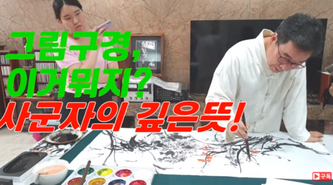 이 영상(https://www.youtube.com/watch?v=wzFaKgD6AZ0)은 한 구독자께서 필자의 유튜브 영상을 시청하고 난 다음 의뢰한 작품 창작 과정을 담은 것이다. 사군자를 한 폭에 담은 것으로 때마침 이웃 몇 분이 모였다. 무슨 구경거리가 될까만, 작업하는 곁에서 각자 느낌 그대로 흥미로운 해석을 붙이고 또 창작이나 사군자에 관해 궁금한 것을 묻기도 해서 긴 시간을 함께 즐겼다.