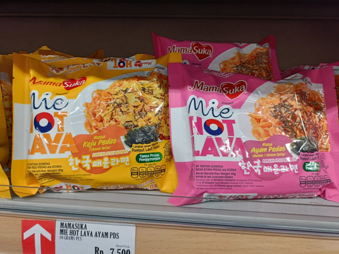 최근엔 마마수카(Mama Suka) 브랜드에서도 한글표기를 포장에 채용한 라면이 나왔다. 상품명은 미 핫 라바(Mie Hot Lava-뜨거운 용암라면)이지만 그 옆에 ‘한국 매운라면’이란