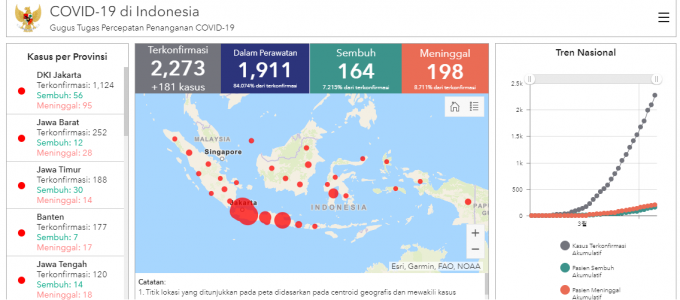 Covid19 정보 [속보] 인니 코로나19, 4월5일 확진자 2,273 명, 사망 198명, 회복 164명