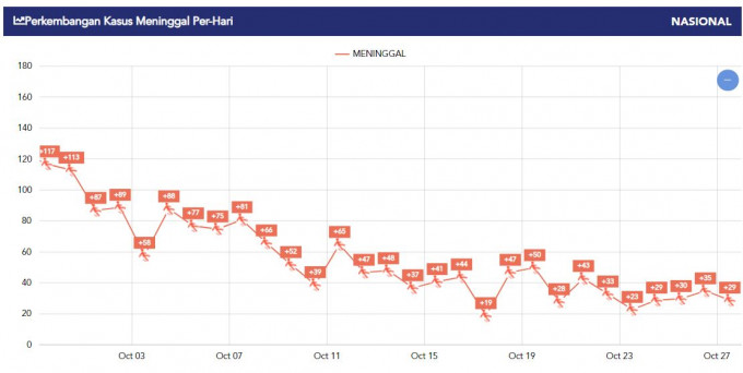 10월 27일 인도네시아 코로나19 누적확진자 4,241,809명 사망 143,299명 회복 4,085,775명으로, 신규확진자는 719명이 추가됐다.