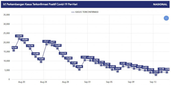 9월 15일 인도네시아 코로나19 누적확진자 4,178,164명 사망 139,682명 회복 3,953,519명으로, 신규확진자는 3,948명이 추가됐다.