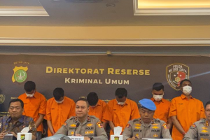메트로 자야 경찰청은 12월 12일(금), 남부 자카르타 빤쪼란에서 발생한 채권추심원 폭행 사망사건 관련해 가해 경찰 여섯 명을 세우고 기자회견을 했다.(사진=꼼빠스닷컴/Hanifah Salsabila) 지난 12월 11일(목) 남부 자카르타 빤쪼란 지역 깔리바따에서 이른바 ‘마따 엘랑(매의 눈)’이라 불리는 두 명의 채권추심원이 폭행을 당
