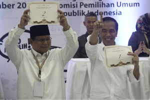 2019년 대선을 앞두고 선거인단 번호를 들어 보이는 조코 위도도 대통령 (오른쪽)과 쁘라보워 수비안또 당시 국방장관. 2018.9 (사진=자카르타경제신문/Aditya) 지난 10월 4일(토) 쁘라보워 수비안또 대통령과 조코 위도도 전 대통령의 회동은 두 사람 사이의 역학 관계 변화를 시사한다. 분석가들은 조코