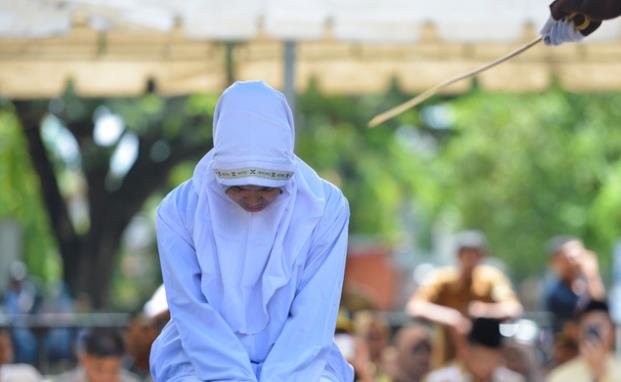 인도네시아 아쩨 주의 주도 반다 아쩨에서 29일(현지시간) 공개적인 장소에서 이성과 밀접하게 접촉했다 체포된 커플에게 공개 태형이 집행됐다.