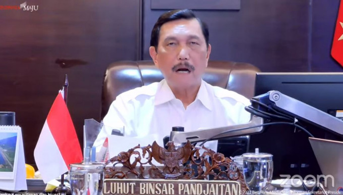 9월 20일 루훗 빤자이딴( (Luhut Binsar Pandjaitan) 해양투자조정 장관이 자바-발리 PPKM 시행 연장을 발표하고 있다(대통령비서실 유튜브 캡처)