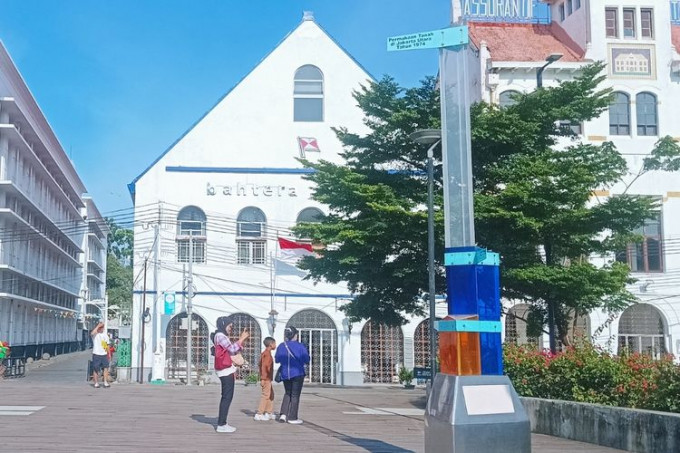 5일 꼼빠스닷컴 보도에 따르면, 지난 2023년에 설치된 이 상징물은 유리와 플라스틱 소재로 제작된 높이 4.5미터의 가늘고 직선적인 형태로, 네덜란드 식민지 시대의 웅장한 건축물들 사이에서 작은 규모에도 불구하고 방문객들의 시선을 끌고 있다. 일부 방문객들은 이 상징물에 적힌 설명을 읽거나 사진을 촬영하며 지반 침하의 심각성을 체감하고 있다.