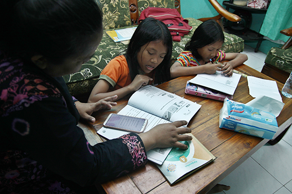 2020년 코로나 19 팬데믹 당시 집에서 원격 학습을 하고 있는 학생(사진=자카르타경제신문/Aditya)