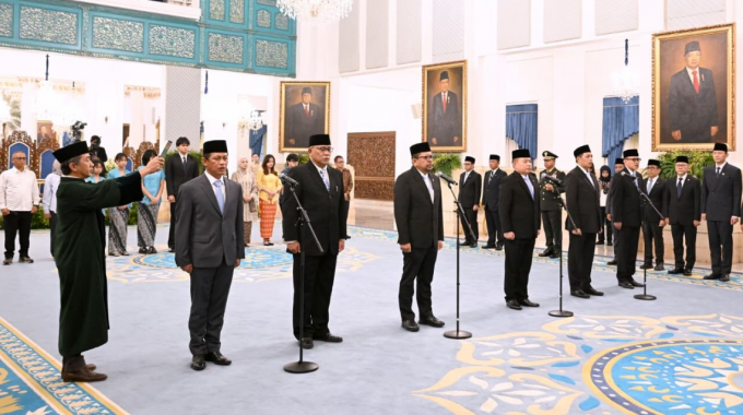쁘라보워 수비안또 대통령은 2026년 4월 27일 월요일 자카르타 대통령궁에서 정부 고위 관리들을 공식 임명했다.(사진=인도네시아 대통령비서실 언론미디어국/Muchlis Jr.)