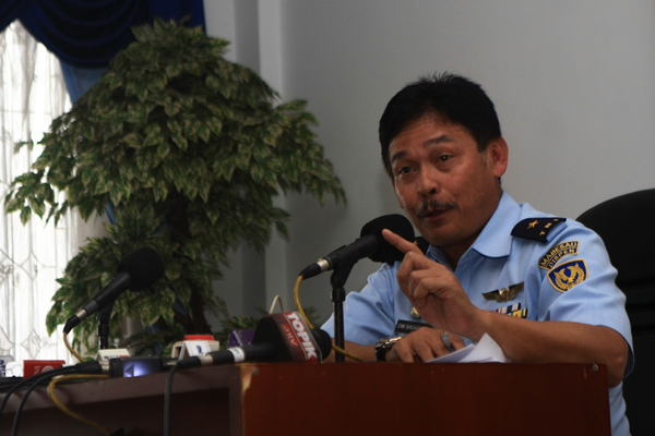 Head of the Information Office Air Force (Kadispen-AU), Air Commodore TNI Dwi Badarmanto giving a press conference related to the fall of light combat aircraft the T-50i Golden Eagle, which took place in Yogyakarta, at the airforce base the Halim Perdanakusuma, Jakarta, Sunday, December 20, 2015 . According to Badarmanto, the fighter aircraft crashed shortly after maneuvering Low Pass, in order to follow Gebyar Aerospace 2015, on Sunday, December 20th, at 09:45 am, at Adisucipto Air Base , Yogyakarta. Two of the pilots namely, Lt. Col. Airmen Marda Sarjono (Commander of the Air Squadron 15) and Flight Captain Dwi Cahyadi (interceptor radar officer) who flew the plane that made in South Korea, declared dead in the incident. (JakartaBizWeekly/Aditya - Youtube - spc)