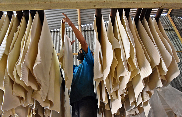 Workers checked the newly printed rubber sheets at the rubber processing plant of the Citra Mandiri Regional Company in Central Java (PD CMJT), Tlogo village, Semarang Regency, Central Java, on Wednesday, September 19, 2018. According to the Indonesian Rubber Farmers Association (Apkarindo), the price of rubber in the level of farmers has decreased since the last six months from around IDR 10,000 per kilogram to IDR 5,000 - IDR 6,000 per kilogram. (ANTARAPhoto/Aditya Pradana Putra)