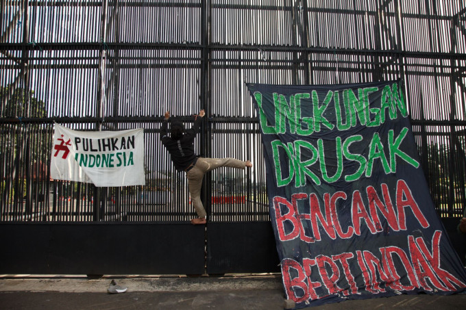 이들은 기후위기와 생태재난이 확산되는 상황에서도 환경 파괴를 합법화하는 각종 허가가 계속되고 있는 현실을 비판하며, 개발 정책이 오히려 파괴적인 추출 산업을 지원해 농민·어민·원주민 등 취약계층의 삶의 터전을 위협하고 있다고 지적했다. WALHI는 정부에 이러한 정책을 즉각 중단할 것을 촉구했다. [사진=자카르타경제신문/Aditya]