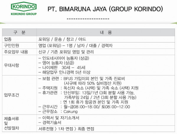 K-move 구인∙구직 [구인]PT.BIMARUNA JAYA (GROUP KORINDO)