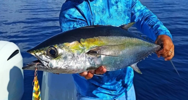 # 낚시 투어 종료 후 신선한 참치를 회로 손질하거나 구이로 조리하여 선박 사무실 야회 식탁에서 함께 즐기는 저녁 식사로 제공됩니다.