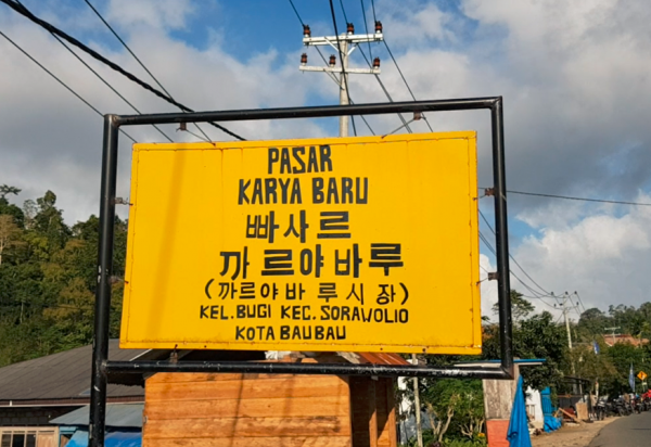 찌아찌아족은 부톤섬에 약 7만명이 거주하며 그중 대표적인 마을 중 한곳인 소라올리오 지역에는 깜풍 까르야 바루(Kampung Karya Baru)는 한글을 자신들의 언어 표기에 적용하면서 “한국 마을”로 알려지게 되었습니다. 이러한 적응은 찌아찌아어가 이전에 표준 문자 체계를 갖고 있지 않아 소멸 위기에 처해 있었기 때문에 이루어졌습니다.